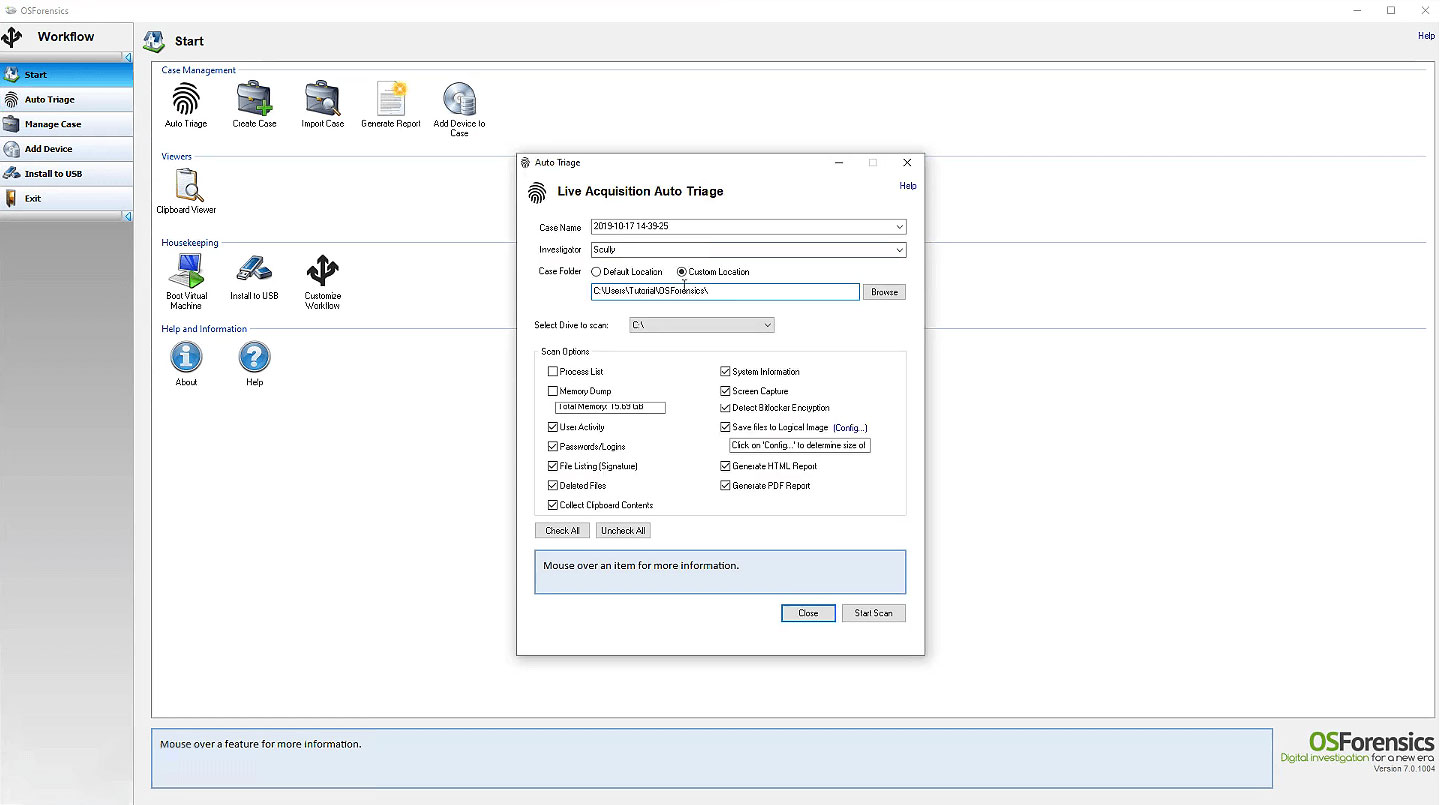 يقدم OSForensics مجموعة ضخمة من الأدوات التي تساعد على إدارة التحقيقات الرقمية بفعالية، مثل :